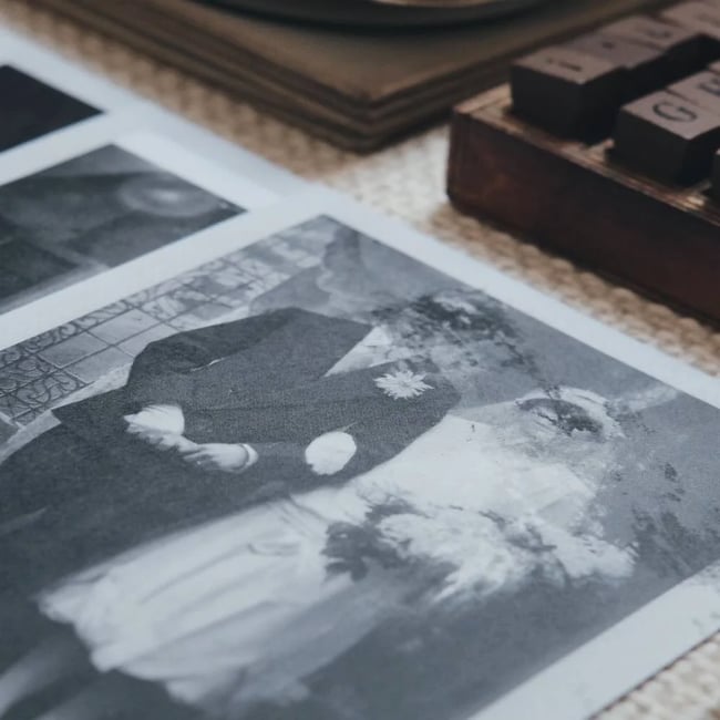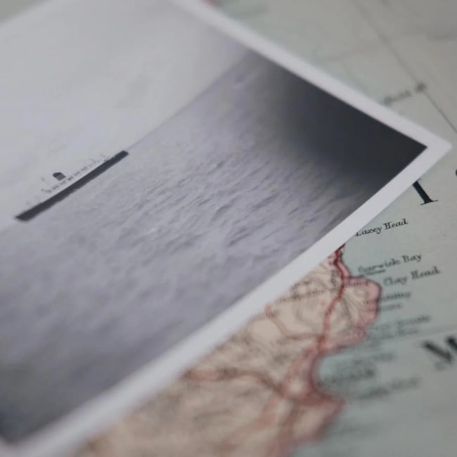 Complementing the record are old clothbound maps and even older photographs, reinforcing the journey, the heart’s want to return to the past, and to happier days.