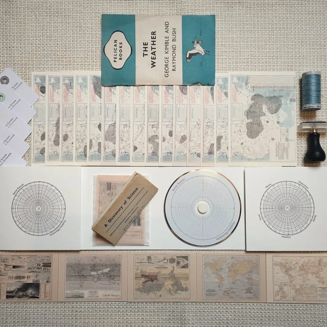 This one is an absolute beauty and possibly our favourite design of the year: Two tone / 4 panel hand made letter-pressed Somerset cotton covers, glass mastered CD, 15 x U.S Department Of Agriculture weather maps printed on luxury 250gsm card (size A6), 5 x William Blackwood & Sons Meteorology charts printed on luxury 250gsm card (size A7), insert from 'The Weather' by George Kimble / Raymond Bush (Circa 1943), sandalwood scent. All of the above rests inside stitched / sealed glassine bags, individually hand numbered on letter-pressed tags.
